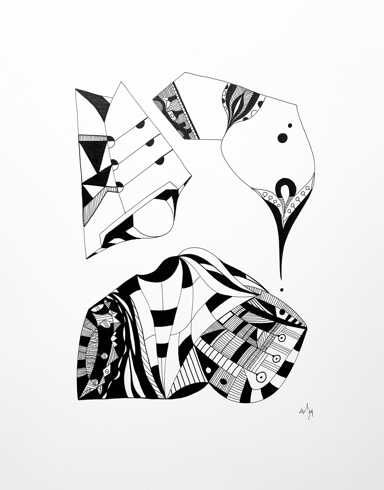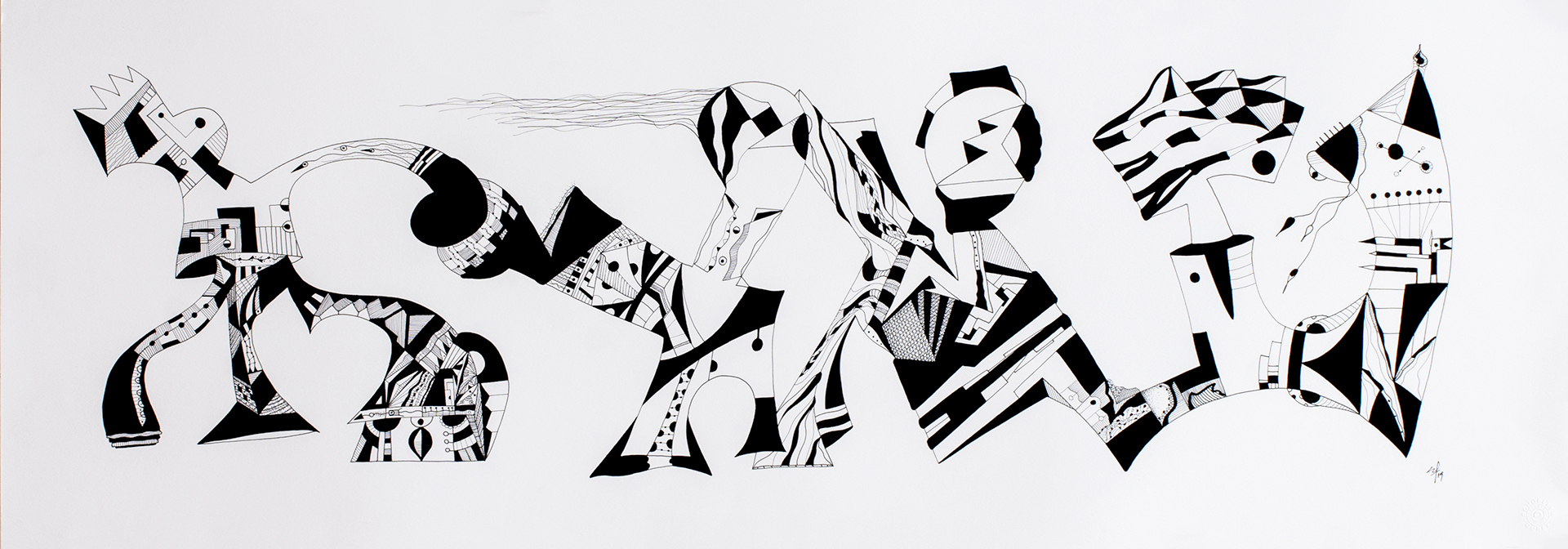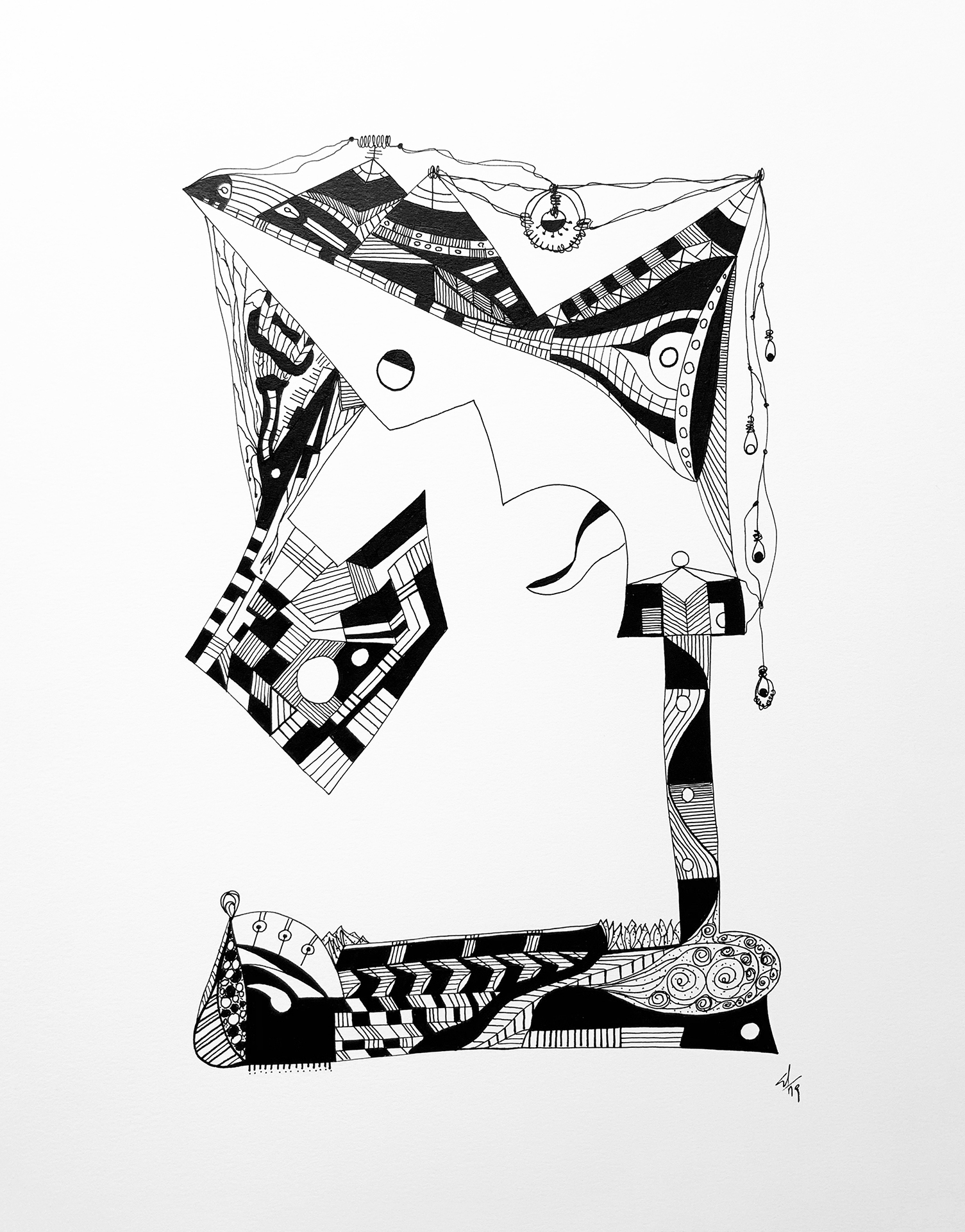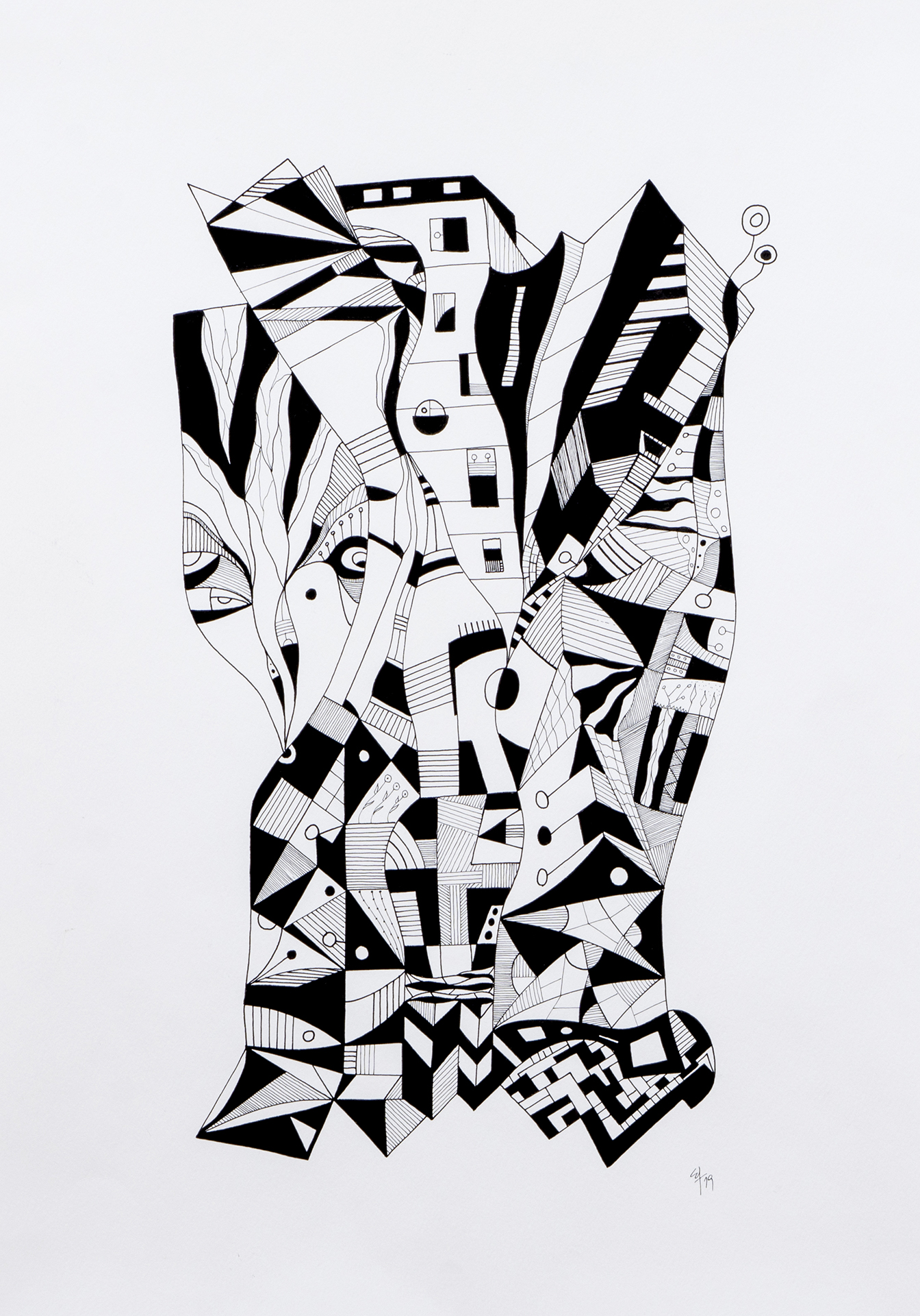 La serie "Patagonia 2019", presentada en la exposición "Por Otros Medios" en Patagonia Flooring Design & Art Center en 2019, ofrece una inmersión en paisajes y personajes surrealistas a través del uso de tinta negra sobre papel. Obras como "Magnético", "El Soberano", y "Lucha entre Dos Mundos" emplean la tinta para crear plenos y texturas, configurando escenas complejas y micromundos detallados. Cada pieza explora una realidad propia, desdibujando los límites entre el espacio y las figuras en un diálogo constante de contrastes y formas. La serie destaca cómo estos contrastes revelan la riqueza de los detalles y las texturas, construyendo así mundos imaginarios y surrealistas que invitan al espectador a una experiencia visual envolvente.
